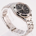 This OMEGA Speedmaster wristwatch is a fine addition to any collection. With a sleek silver case and bracelet, this watch is both stylish and functional. The black dial features baton indexes and a concentric pattern, with a date indicator and chronograph feature. The watch is Swiss made and has a self-winding movement, making it a reliable timepiece. The tachymeter bezel adds a touch of sophistication to this already impressive watch. Perfect for men who appreciate quality and style. Comes with the watch only. We cleaned and lubricated the movement and made some adjustments. Keeping great time and chronos work as they should. Inexpensive way to get into an Omega classic. |