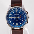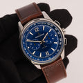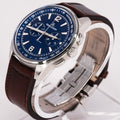 The Jaeger-LeCoultre Polaris Chronograph Q9028480 combines vintage-inspired design with modern chronograph functionality. This 42mm stainless steel model features a striking blue sunray-finish dial with contrasting sub-dials and luminous markers. Its sporty yet refined aesthetic makes it ideal for both casual and professional settings.