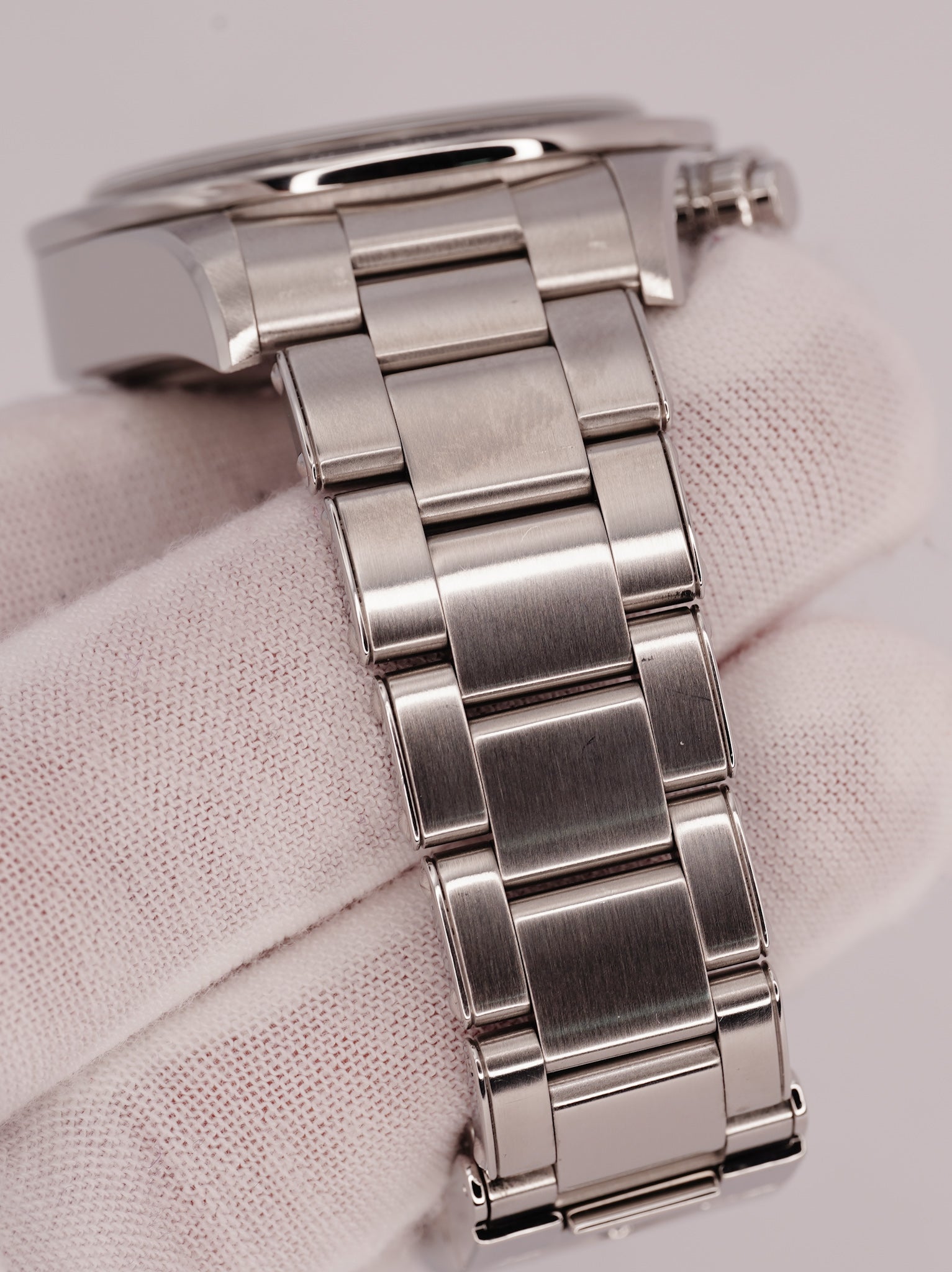 This 2021 Tudor Black Bay Chrono offers vintage motorsport flair with contemporary performance. The 41mm stainless steel case frames a striking black dial with contrasting white subdials—known as the “reverse panda” configuration—set beneath a domed sapphire crystal. Powered by the COSC-certified MT5813 automatic chronograph movement, it boasts a 70-hour power reserve and column wheel mechanism. Rugged, reliable, and undeniably stylish, the Black Bay Chrono is Tudor’s bold statement in the chronograph space.