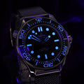 Classic Seamaster design with modern ceramic and laser-engraved wave dial