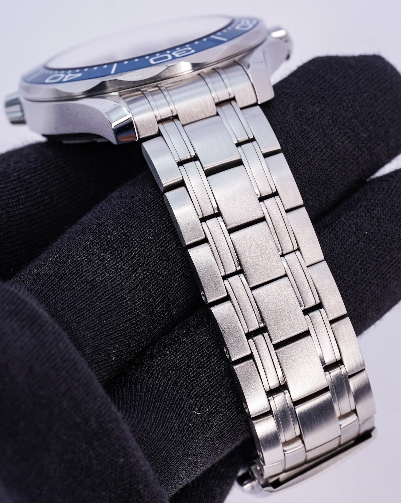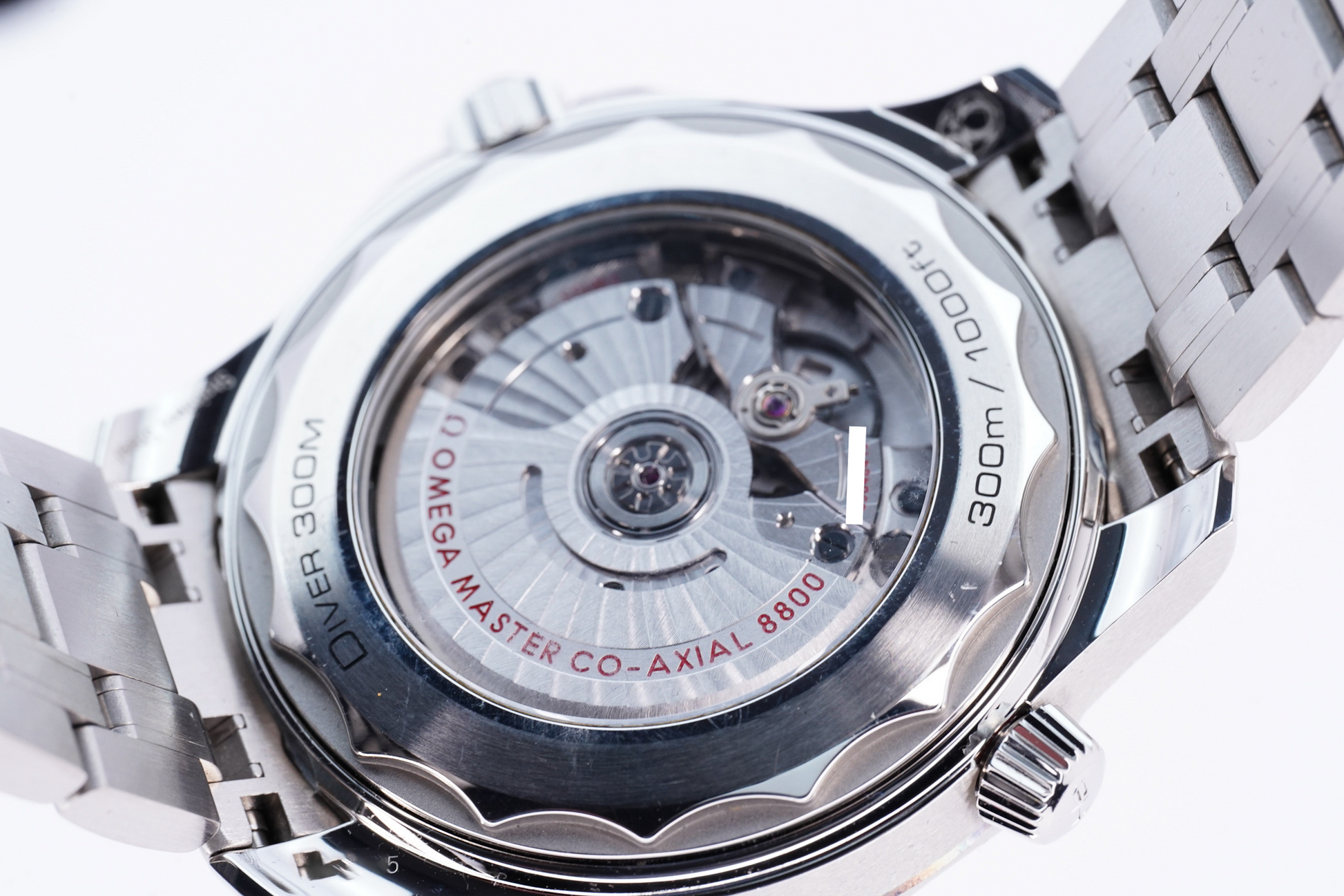Inside, the Omega Co-Axial Master Chronometer Caliber 8800 automatic movement delivers a 55-hour power reserve along with exceptional accuracy, magnetic resistance, and long-term reliability. A sapphire exhibition caseback showcases the decorated movement, while 300 meters of water resistance ensures serious dive capability.
