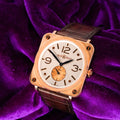 The Bell & Ross BR S Rose Gold “Pearl” Ref. BRS-PKGOLD-PEARL_D blends luxurious materials with the brand’s signature instrument-panel design language. With its elegant pearl dial, slim manual-wind movement, and solid 18k rose gold case, it stands out as a sophisticated choice for collectors who value distinctive aesthetics and refined craftsmanship.