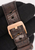 • Iconic square 39mm case crafted in solid 18k rose gold