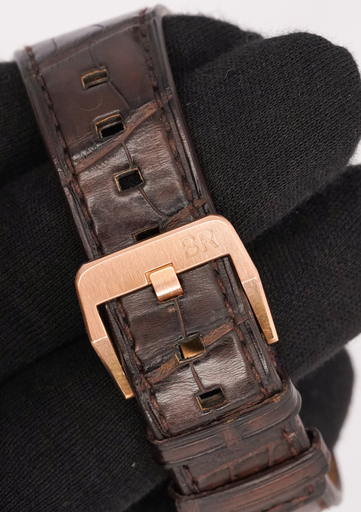Powered by a manual-winding ETA 7001 movement, this model offers reliability, traditional watchmaking appeal, and slim wrist comfort. With a water resistance of 50 meters and a luxurious alligator leather strap, it’s a refined choice for collectors seeking a precious-metal Bell & Ross in very good condition.