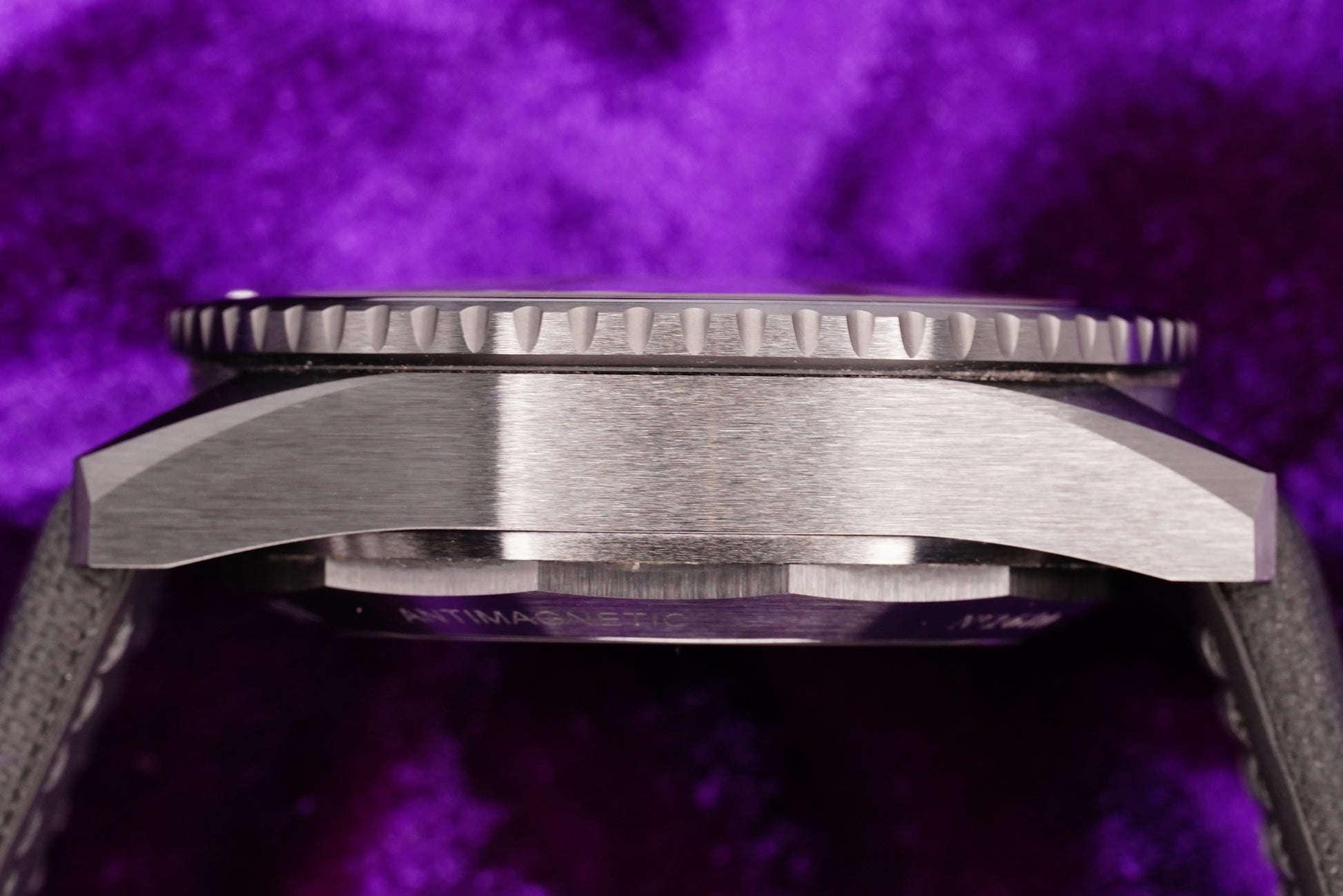 Case: Brushed stainless steel case with professional-grade construction and dive-ready proportions.