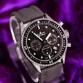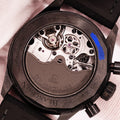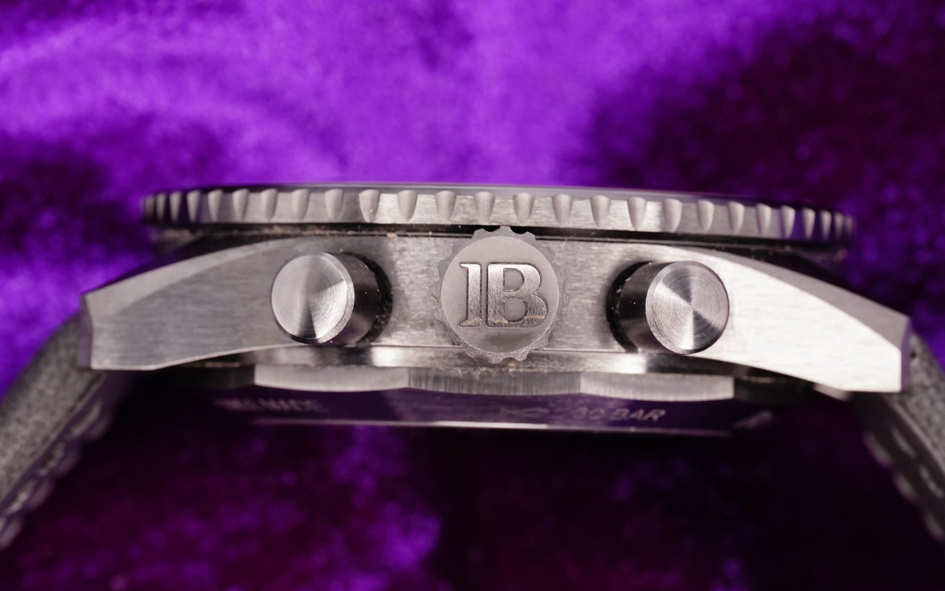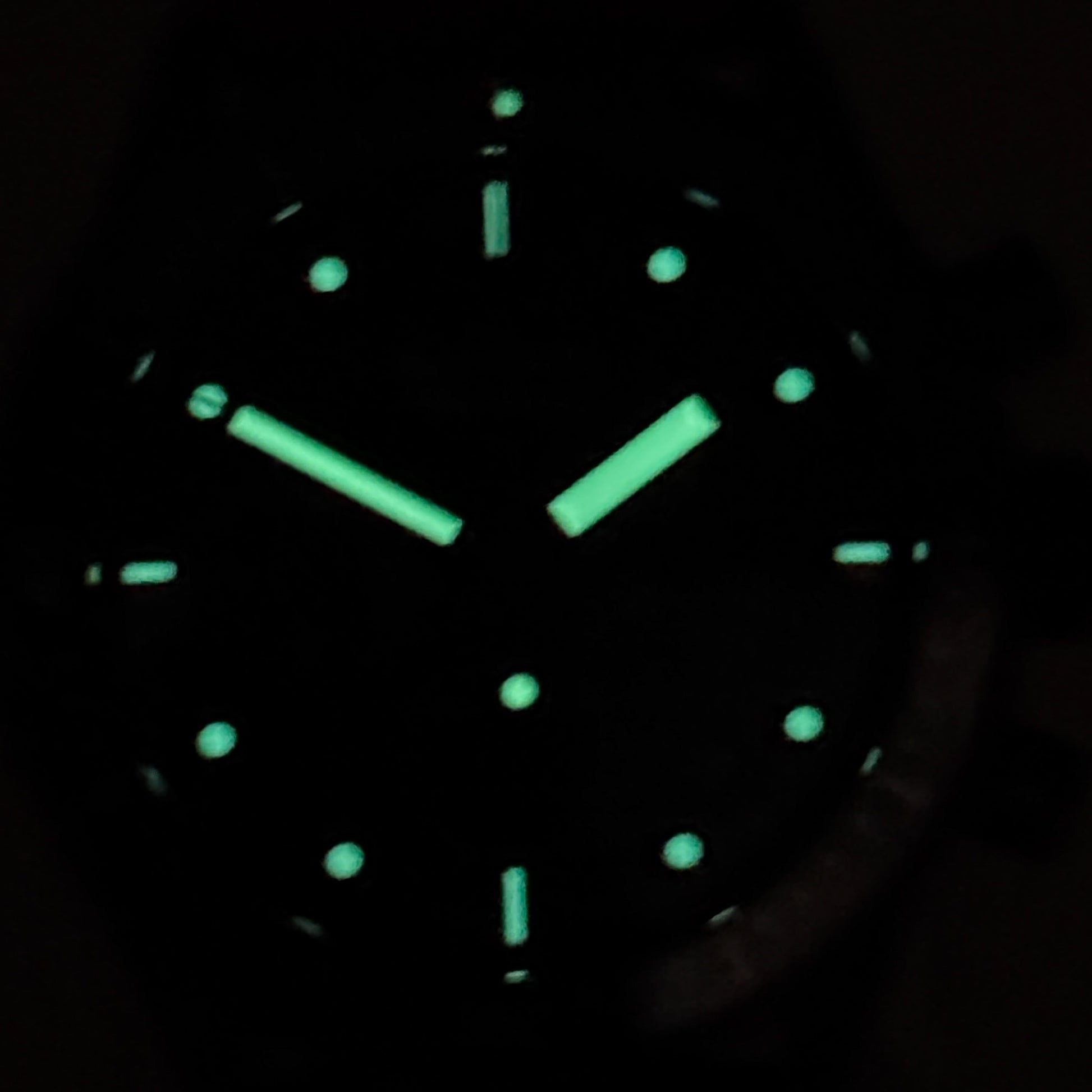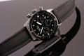 Dial: Clean black dial with sharply cut chronograph registers and bold luminescent markers.