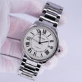The Cartier Ronde de Cartier Ref. WSRN0035 embodies the maison’s elegant balance of classic Parisian design and modern refinement. Featuring a 40mm stainless steel case with Cartier’s signature silvered opaline dial, blued-steel hands, and bold Roman numerals, this model delivers timeless sophistication suitable for any occasion.