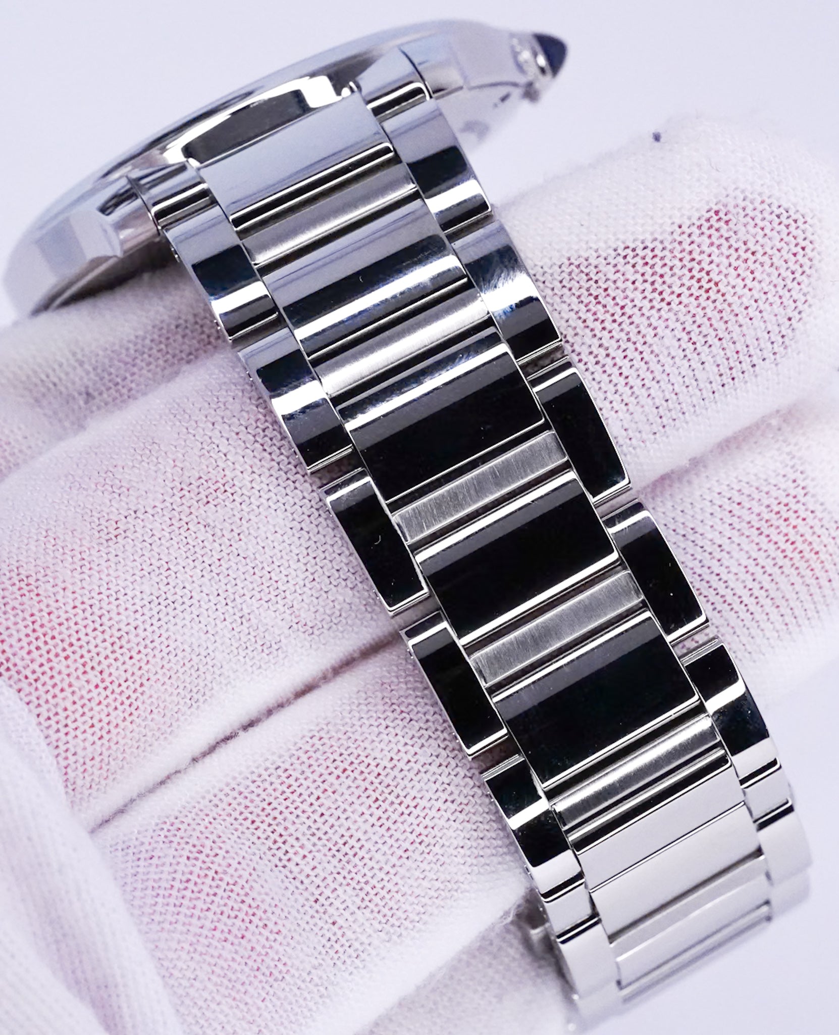 Powered by Cartier’s automatic movement, the Ronde de Cartier offers precision and reliability in a sleek profile. The watch is paired with a matching stainless steel bracelet and folding clasp, creating a comfortable and versatile wrist presence. Presented here in very good condition, it comes as a full set complete with box, papers, and manuals.