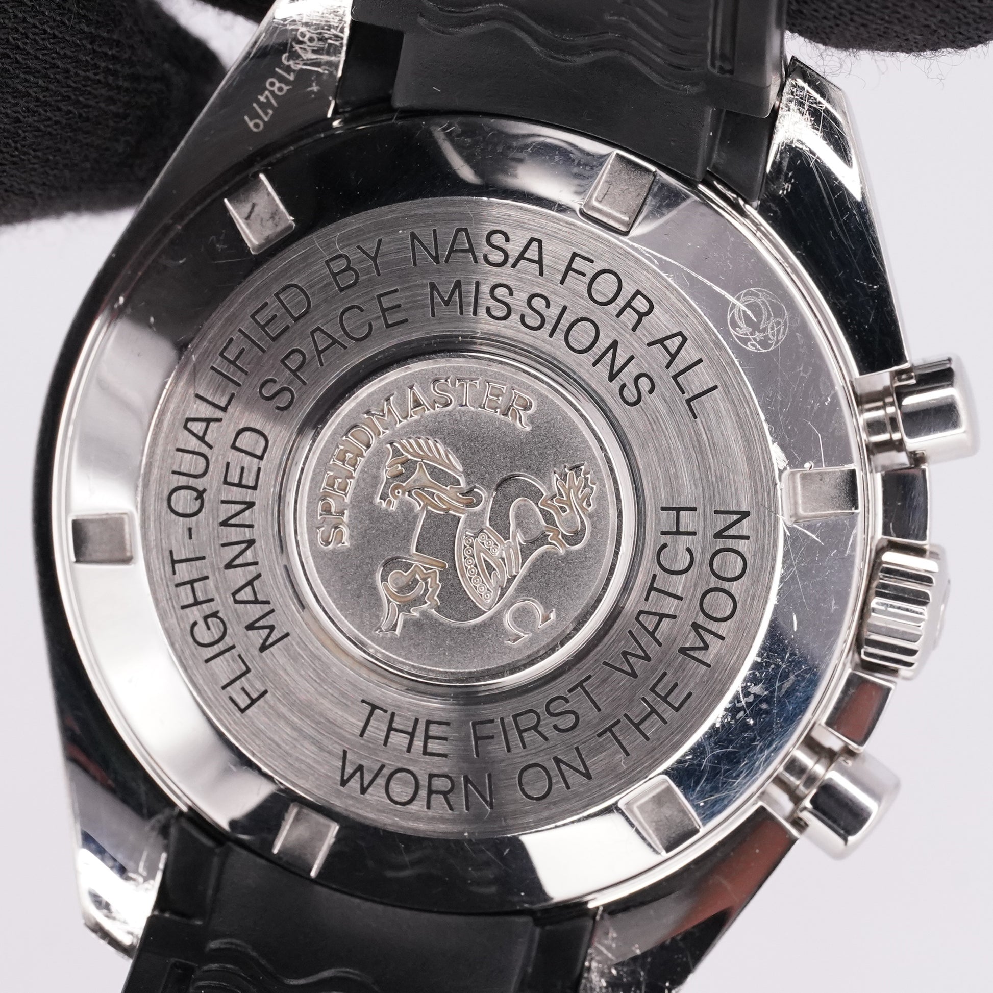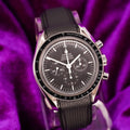 • Black dial and hesalite crystal preserving the original Speedmaster aesthetic