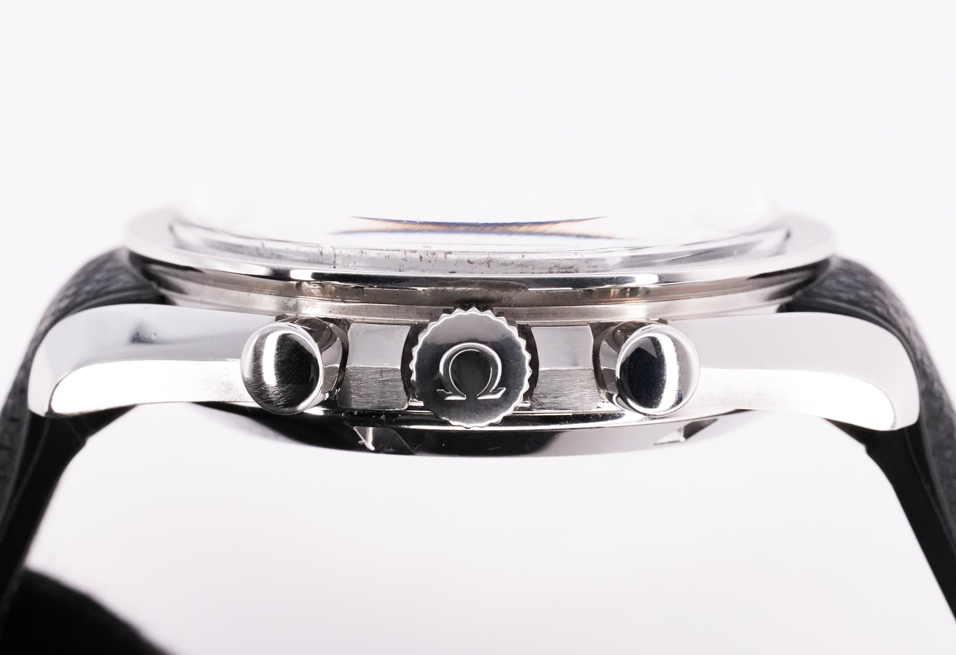 Powered by Omega’s hand-wound Caliber 1861 mechanical chronograph movement, this model offers precision, reliability, and a tactile connection to traditional watchmaking. Presented here in very good condition, this watch-only example is paired with a black leather strap, offering a classic and versatile look.