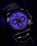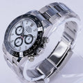 The Rolex Cosmograph Daytona Ref. 116500LN, known as the “Panda Dial,” stands as one of the most coveted modern Rolex sports watches. Introduced in 2016 at Baselworld, it features a 40mm Oystersteel case, crisp white dial with black subdials, and a black Cerachrom tachymeter bezel. The harmonious contrast gives it both sportiness and elegance, making it instantly recognizable and highly sought after.