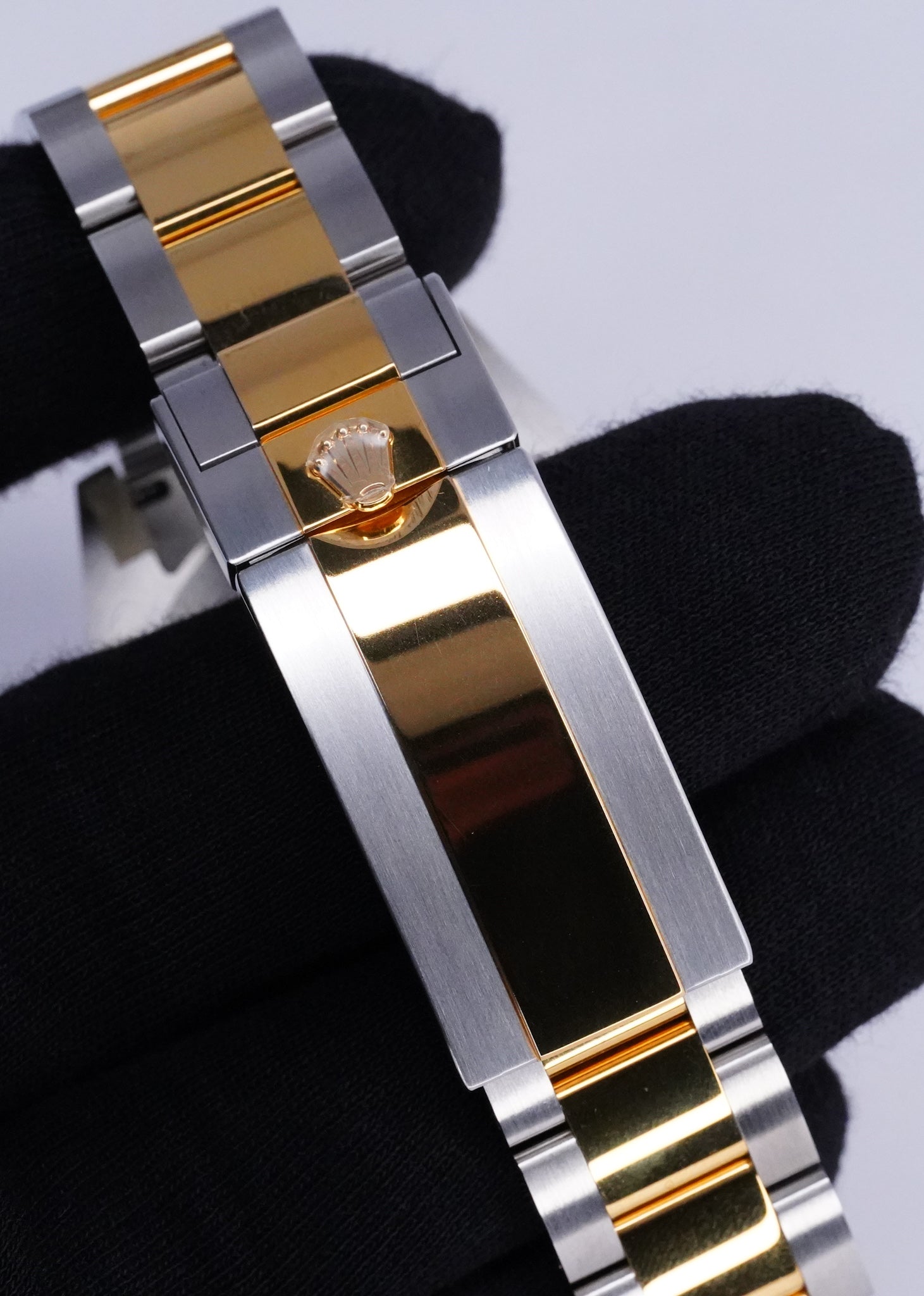 Robust two-tone Oyster case with ceramic bezel for durability and luxury