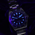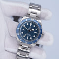 • Blue dial and matching aluminum bezel for a clean, classic dive-watch aesthetic