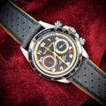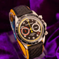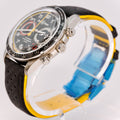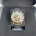 Not just a handsome face, this watch is Swiss-made, featuring a mechanical (automatic) movement, a chronograph, a date indicator, and a 24-hour rotating bezel. It is also water-resistant up to 100 meters, making it a versatile companion for both daily wear and aquatic adventures. The watch arrives with its original packaging, including a fold-over closure for added security.